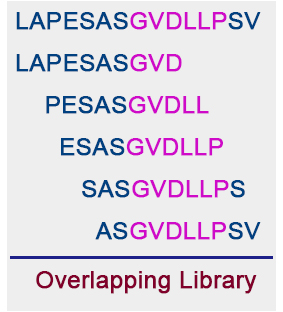 首尾相搭多肽文庫是用于篩選線性或連續(xù)性表位的一種常用手段。這種肽庫的設(shè)計主要由肽長(peptide length)和步移(offset number)兩個參數(shù)決定。蛋白從N端開始,逐步向C端截取設(shè)計后,最后很有可能會剩下一條孤肽(Orphan peptide),我們建議將N端轉(zhuǎn)移一個或者幾個氨基酸過來,以保持一致長度。